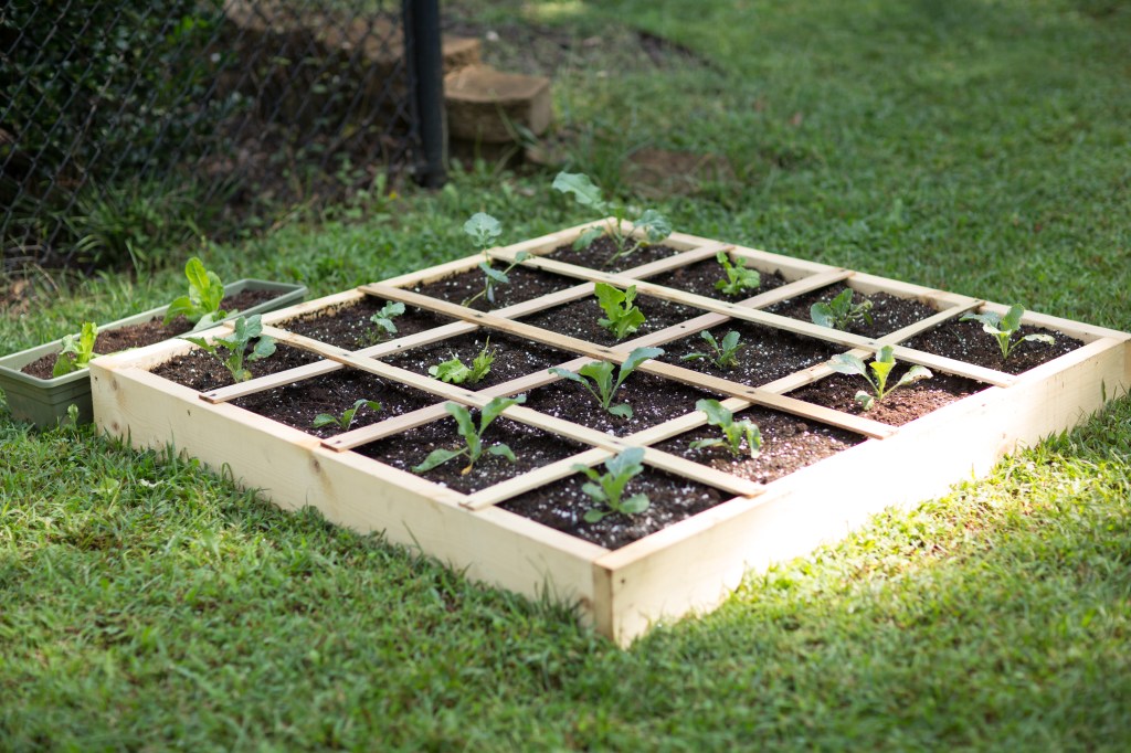 During that first month of home ownership, we were walking through Lowes and Gus saw a book called “Square Foot Gardening”. It seemed interesting, so we picked it up. When I started reading at home, it seemed like a really neat concept! It talked about how you could maximize your garden space by planting in raised beds with a special soil mixture. We had a fairly large yard, but since we were surrounded by trees, we had a very small area that received full sun throughout the day, so Square Foot Gardening seemed that it would work.
