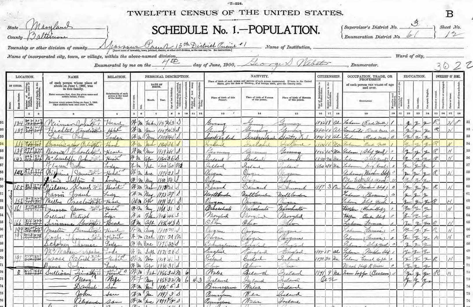 Last weekend, I came across a 1900 census in Baltimore that had a Patrick Branagan on it living in Sparrow’s Point. For Baltimoreans, they know that is the location of the Bethlehem Steel plant. The census looked odd though. It was a list of hundreds of single guys. At first I thought, “Oh no! He’s in prison!” (I’ve seen this before…lol). But looking closer, I saw that instead of an address listed, these guys were listed as living in “shanties”.