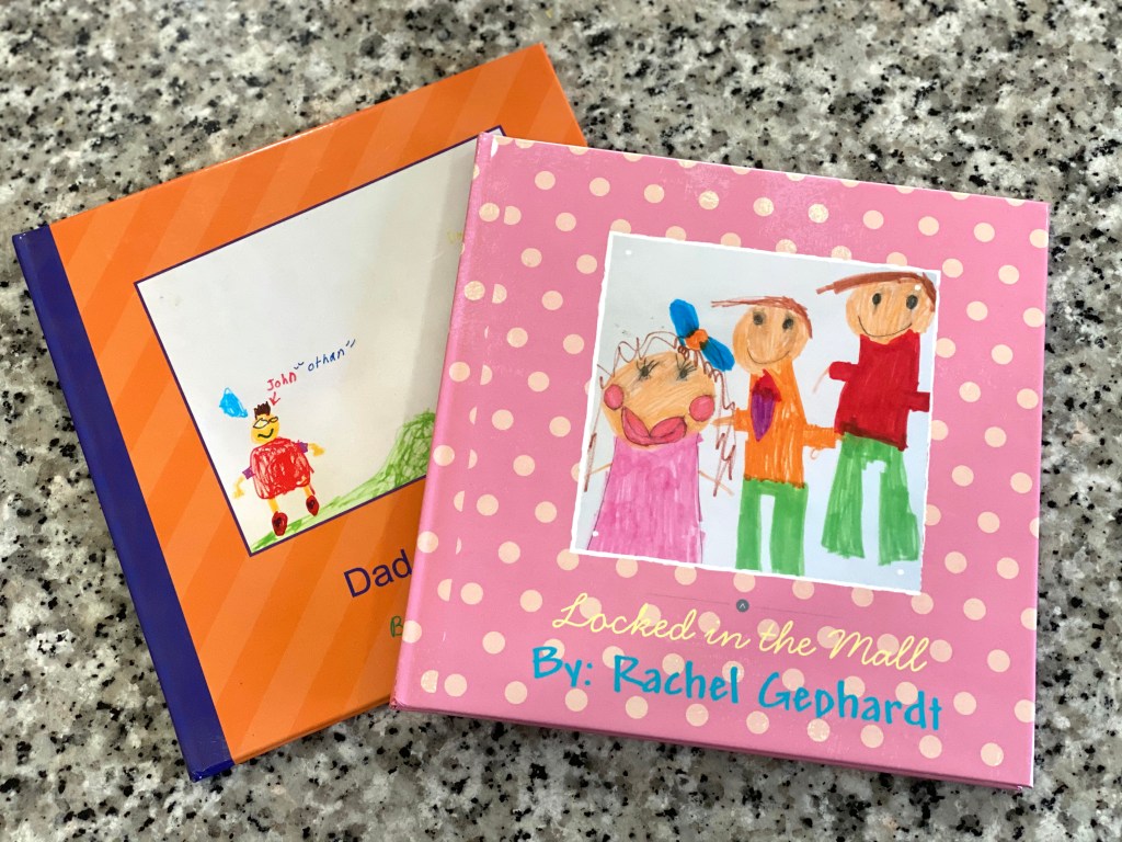 On Shutterfly, you can make 8×8 hard cover books. Multiple times a year, they let you print a free one, and you only pay shipping! So for about $10, you can have your child create and illustrate a story and have a copy printed. My kids love to look back at old stories that they wrote when they were younger!