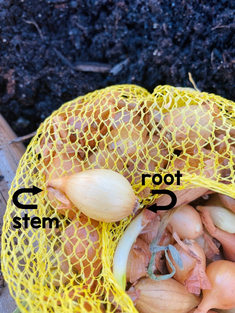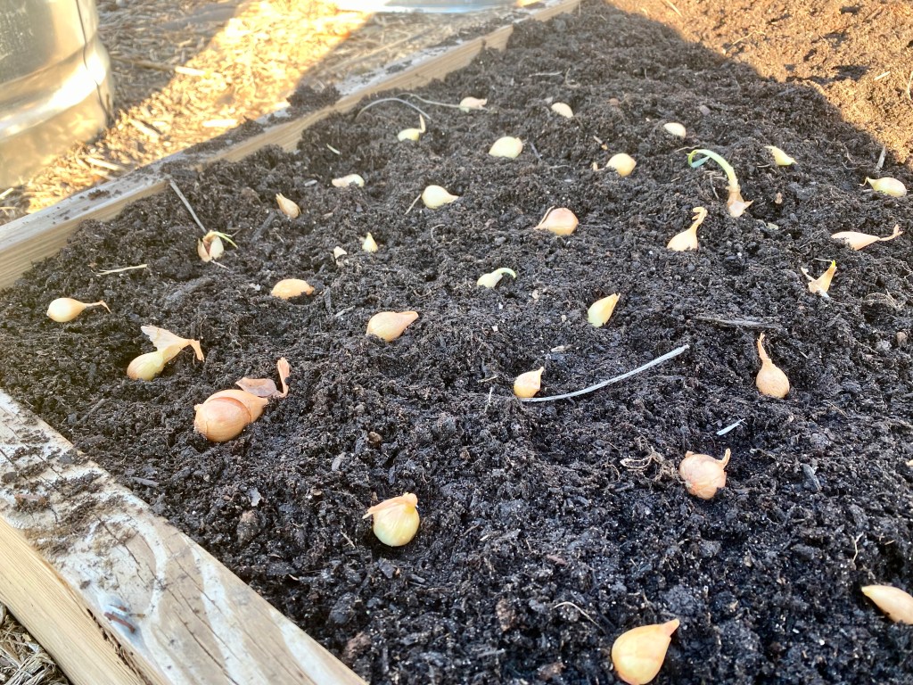 I then pushed them about 1-1.5 inches into the ground with the root side down (you can usually see little root hairs to indicate which side is the root).