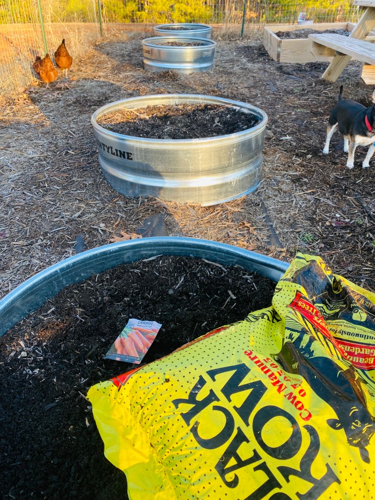 Then I planted another pack of carrots in my round fire rings that I use for planting. I bought these last year and they were SO great for growing plants!